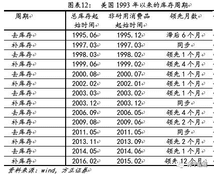 美国的库存周期主要来自于终端需求,其生产系统落后于需求端,从历史上来看,美国生产系统的传导存在着清晰的从下游往上游的传导过程。美国家庭部门收入提高,推动非耐用消费品增加,再进一步推动耐用消费品和房地产需求,进而推动整个生产系统的扩张。