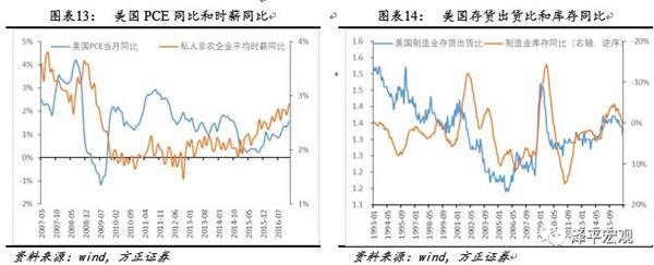 美国此轮补库存始于2016年2月,目前补库趋势仍在延续。美国非农雇员时薪自2015年开始回暖并进入上升阶段,推动通胀上升,显示美国消费需求逐步回暖。受终端需求带动,美国于2016年2月进入补库周期,而作为领先指标的库销比仍在下降,意味着企业补库尚不及销售增长,未来补库仍将延续。