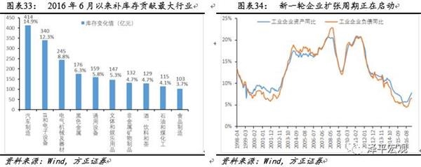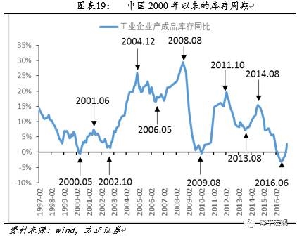 依据这一标准,我们大体上可以将2000年以来的中国经济划分为五个库存周期,分别是2000.05-2002.10;2002.11-2006.05;2006.06-2009.08;2009.09-2013.08;2013.09-2016.06,目前中国正处在第六个库存周期的主动补库存阶段。