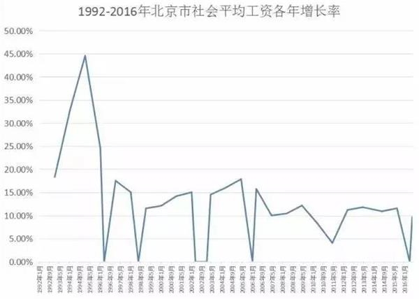 1992年,北京社会平均工资为240元/月,到2016年已升至7086元/月,24年里增长了29.52倍,复合增长率为14.10%。