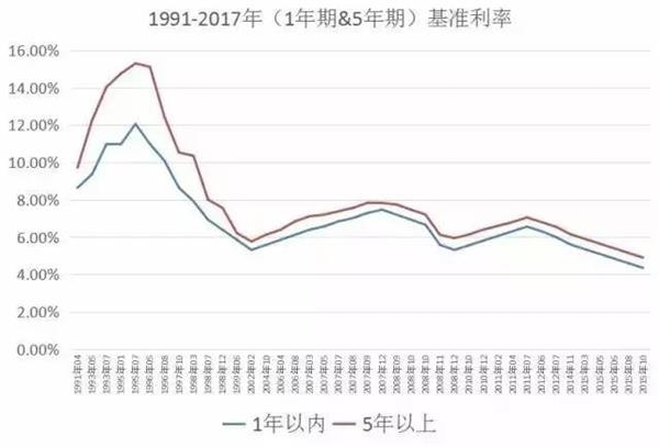 1991-2017年,我国1年期银行平均贷款基准利率为6.93%,5年期银行平均贷款基准利率为8.01%。