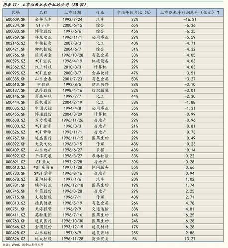 上市以来从未进行现金分红的公司有38家(我们剔除了上市时间较短,如2015年后上市公司的两家公司),其中大部分公司都处于亏损状态,没有能力分红,但是也不乏有盈利但公司处于快速发展的上市公司。