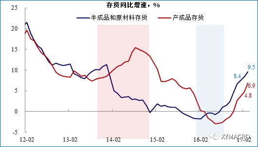 以本轮周期为例,3月工业产成品存货价值38832.9亿元,2016年3月产成品存货价值36329.7亿元,存货同比名义增长6.9%。基于工业购进价PPIRM,假设原材料在过去6个月平均采购,6个月前的存货在当月已完全出售,则价格重估效应达到5.0%(原材料价格平均增长6.5%,根据统计局数据估算成本中的原材料占比约77%).实际存货的变化仅约1.8%。这符合我们在情况2中的基本判断。
