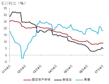 影响投资回落的主要因素?(1)制造业投资回落,与信贷增速下滑、PPI回落、4月份出口放缓有关;(2)基建投资小幅回落,源于财政政策控制节奏,支出力度明显下降。