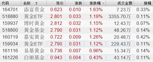 隔夜金价飙升至1260美元 多只黄金ETF高开1%