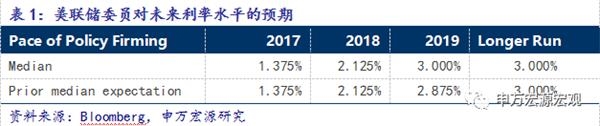 从5月份议息会议的经济预测以及利率点阵图来看,对比3月份的会议情况,利率点阵图显示利率2017年加息路径不变,美联储对前景整体乐观。预计2017年加息两到三次。我们认为未来美联储加息次数主要取决于特朗普的政策落地情况。若是税改和增支进展顺利,美联储要急于行动,预防通胀,6月可能加息。但目前特朗普困难缠身,加息更大概率预计出现在下半年9月或12月。