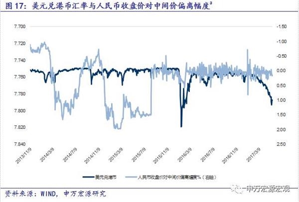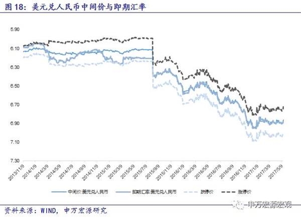 3、人民币收盘价对中间价偏离幅度=(即期汇率/中间价-1)*100,在人民币升值过程中,偏离幅度为正代表汇率波动由中间价带动,为负代表汇率波动由市场带动。贬值过程中则反之。