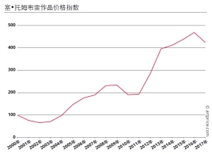 可见,赛·托姆布雷在其过世之后(2011年7月过世),其作品身价再次大涨:2010年至今,价格指数已激增370%。