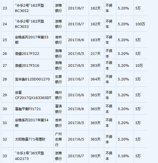 6月2日在售高收益银行理财产品一览