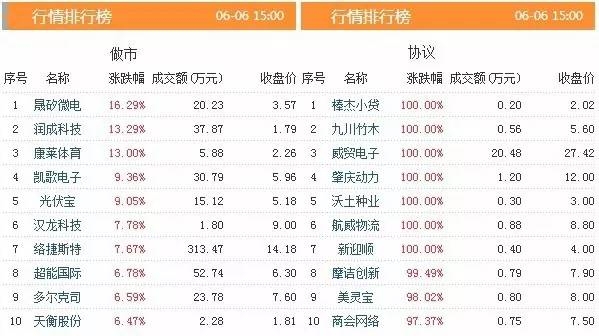 昨日共有1002只股票发生交易,成交金额10.96亿元,做市转让成交3.86亿元,协议转让成交7.10亿元,成交数量17826.80万股。