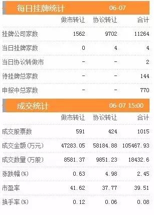 昨日新增挂牌企业4家,截至2017年6月7日,挂牌企业总数达到11264家。