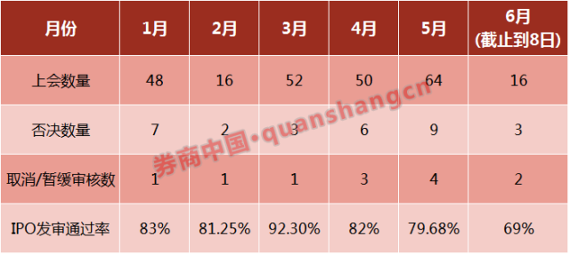 二是六月的IPO发审通过率仅为69%,创下年内新低;