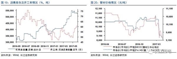 水泥价格整体增势转弱;玻璃价格出现小幅下滑,库存沥青价格震荡,上周小幅上涨,且产能持续回升;管材价格持续下滑。短期来看,市场进入需求淡季,在环保督查和企业限产的影响下,基本维持供需平衡,建议关注去产能政策落地。