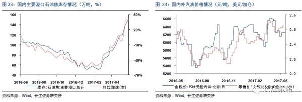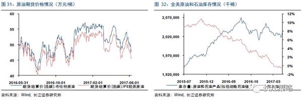 原油方面,上周原油价格继续下滑。美国页岩油产量持续增加,库存数据超预期上行。目前看来全球原油供给过剩的局面没有因OPEC减产协议的延长而得到改善。据全球三大油服贝克休斯统计,截止6月9日美国钻井机活跃数量新增8台,总计达到741台,持续刷新15年4月以来的新高。我们认为,OPEC成员国减产不达预期,加之美国供油持续增加,短期油价改善可能性较低。