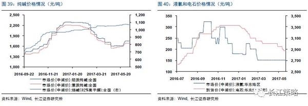 轻质纯碱及重质纯碱价格企稳,烧碱价格小幅下滑。上周轻质纯碱及重质纯碱价格价格分别为1743元/吨和1682元/吨,32%离子膜烧碱价格环比增速为-0.65%达到 1069元/吨。