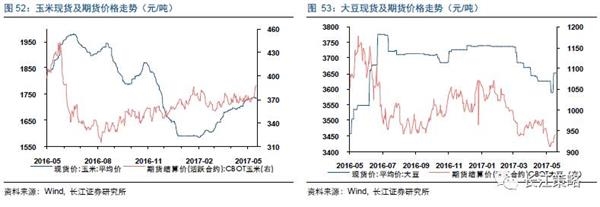 大豆白糖:白糖及大豆价格小幅上涨.由于全球大豆供给处于寡头垄断,17 年拉尼娜现象可能使南美大豆减产,将成为价栺重要推手,预计未来大豆均价将震荡上行。而国内食糖仍处于减产大周期中,预计糖价2017整体仍处于高位。白糖:上周南宁白砂糖现货与期货价格同比增速分别为23.70%和19.43%,环比增速分别为0.74%与1.22%,白糖现货价格达到6780元/吨。本周大豆现货价格收于3651.05元/吨,环比增速为1.72%,同比增速为-0.73%。