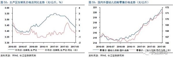 乳制品:2017预计奶价温和上涨。供给端:国内,奶牛存栏量减少且补栏周期较长,国际,美股,新西兰,欧盟等出口国原奶产量持续下降,预计2017原奶供应量将逐步缩减,原奶价格逐步止跌回升。而终端奶粉价格受益注册制带来市场格局的重新划分,行业集中度的提升,推升行业均价。需求端:2017 年全面二孩政策效力有望进一步凸显,需求回暖使收入端持续改善,销量稳步增长,价格上行获得支撑。