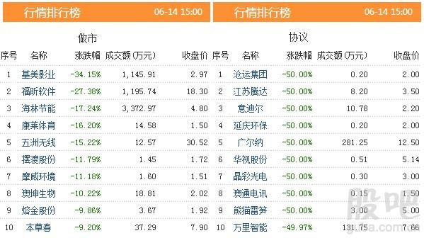 昨日共有998只股票发生交易,成交金额9.14亿元,做市转让成交3.31亿元,协议转让成交5.84亿元,成交数量16731.54万股。