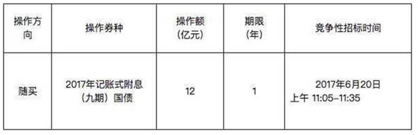 6月19日,中国外汇交易中心网站挂出《财政部关于开展国债做市支持操作有关事宜的通知》。通知称,为支持国债做市,提高国债二级市场流动性,健全反映市场供求关系的国债收益率曲线,财政部决定开展国债做市支持操作。此次操作的标的为1年期国债,操作方向为随买,规模则为12亿元。