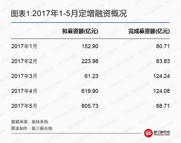 显然,挂牌企业对定增积极性减弱。股转系统数据也证实了定增市场清淡的行情。2017年1-5月,新三板完成实施的定增募资额为501.57亿元,与去年同期的567.6亿元相比下滑11.63%。