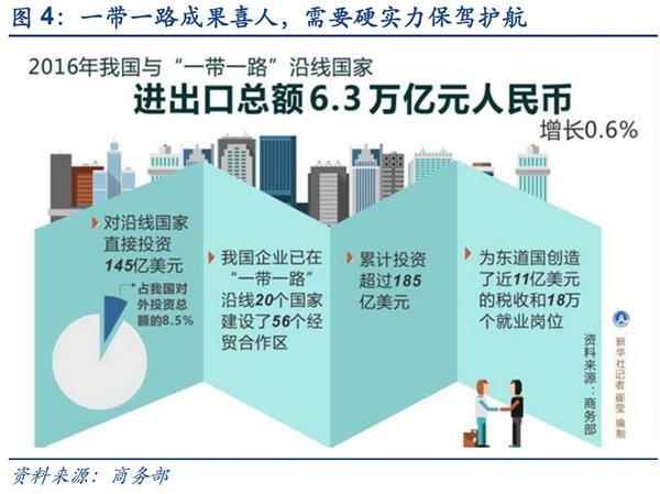 “一带一路”沿线国家风险等级较高:“一带一路”不可避免穿越中亚东亚南亚犯罪和恐怖活动频发地区,而当地政府无力保护中方投资者利益,一旦地区冲突爆发,中方除了撤离无其他任何办法。同时美俄持续在“一带一路”沿线国家进行军事角力,央视新闻4月7日报道,美国日前指责叙利亚政府军违规使用化学武器,向叙利亚政府军机场发射逾60枚战斧导弹意图推翻阿萨德政权。这意味着美国将直接挑战正在叙利亚布防的俄罗斯防空导弹部队,美俄在叙利亚的对抗从间接对抗或转为直接对抗。这直接加深了“一带一路”国家的风险。