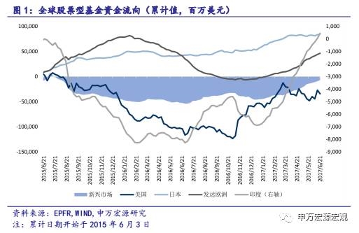 今年上半年全球资金流入新兴市场。中国股市二季度环比大幅增长,远高于新兴市场和香港市场,显示出全球对中国的乐观情绪更加突出。新兴市场,中国和香港股市二季度环比分别为1.04,、10.79和3.73。中国股市在第二季度资金净流入46.54亿美元。大幅资金流入一方面体现对中国A股这次能纳入MSCI的信心,投资者提前布局,另一方面也反应出对中国经济增长和金融市场发展的乐观情绪更加突出。鉴于之后国际资金流入中国渠道更加多元化,也更便捷,资金流入中国将是大趋势。