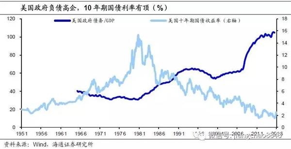 政府负债高企,高利率难以承受。很多人认为,随着特朗普启动大规模减税和基建刺激,美国国债利率将大幅上行至5-6%。但在我们看来,当前美国政府负债率高达100%,与30年以前里根时代30%的政府负债率有着天壤之别,当时美国可以承受10%的国债利率,但是目前在同样的债务利息负担下美国只能承受3%左右国债利率,所以美联储预测本轮加息结束时利率最高就在3%左右,这意味着此前2.6%的国债利率已经接近本轮高点。