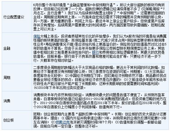 一、行业配置建议