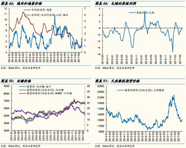通胀链:猪肉和蔬菜价格6月开始价格有所企稳。年初养猪毛利一直维持高位,最近两个月快速下行,目前已经进入亏损区域。相比而言,鸡肉价格周期较短,从去年9月开始养鸡行业开始亏损,今年4月至今父母代鸡存栏量连续下滑,目前虽然价格还未开始上涨,但投资者预期较强。