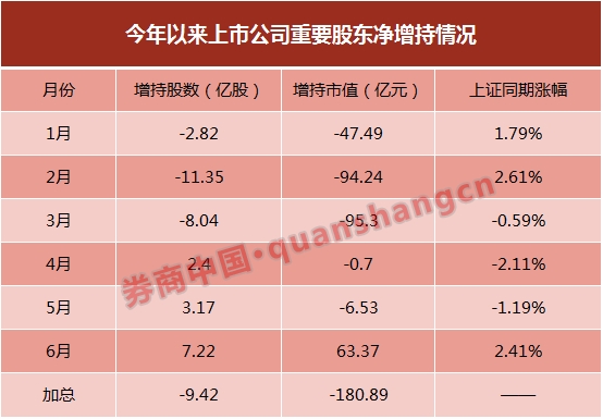 5月28日,被成为史上最严减持新规的《上市公司股东、董监高减持股份的若干规定》正式开始实施,直接让6月份成为今年以来的第一个净增持月份,该月共计增持7.22亿股,增持市值达到63.37亿元。