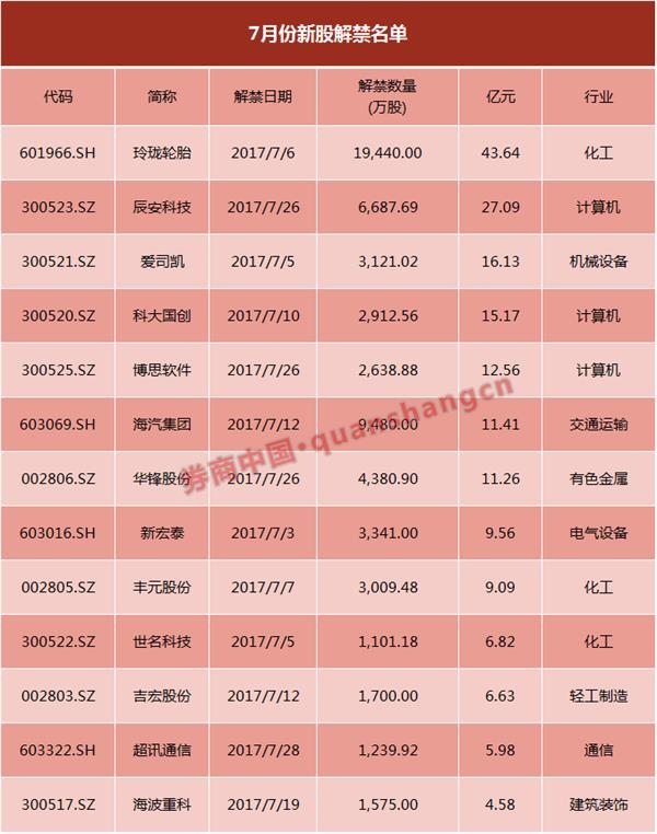 值得留意的是,7月还将迎来解禁小高峰,也给市场增加了减持压力。