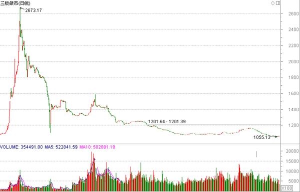 火山君发现,三板做市指数从2015年4月7日的2673点一路下跌至目前的1059点,这段时间内该指数是一个下跌的趋势之中。