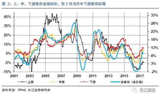 第一种是分结构拆分法,下游设备制造类库存一般在回补阶段具备先衔意义,但从本轮来看仅5月当月中、下游库存回落,仍不充分。