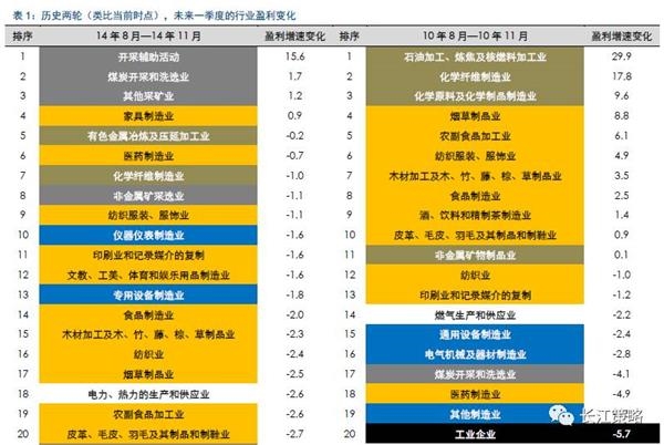从前两轮对应当前节点未来一季度的行业盈利表现来看: