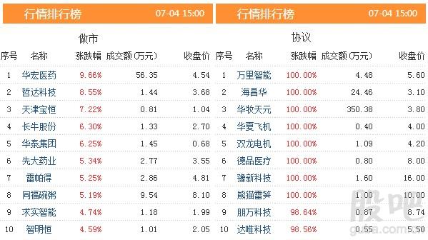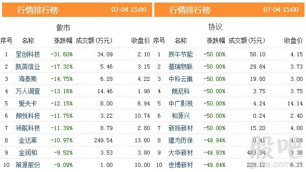 从新三板股票的市场表现来看,今天有8只股票涨幅超过100%,共有44只个股涨幅超过30%。