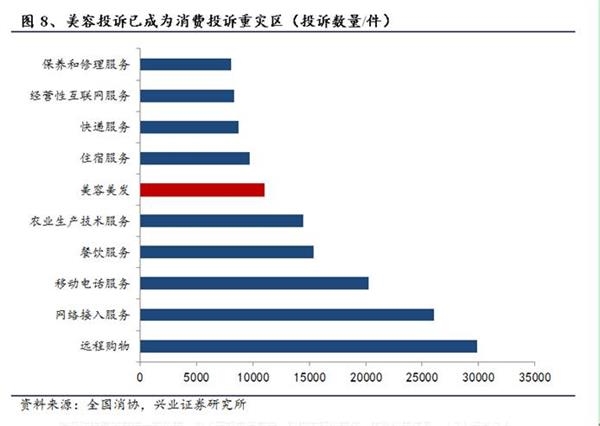 2016年,全国共收到美容投诉10957起,占全年总投诉量的1.68%,位列服务细分领域投诉第6位。