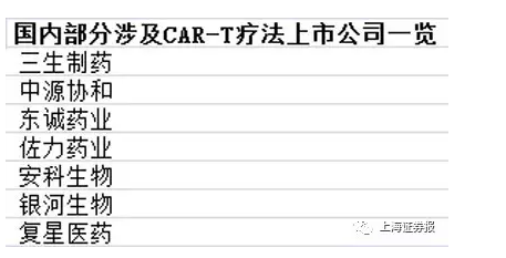 国内部分涉及CAR-T疗法上市公司一览