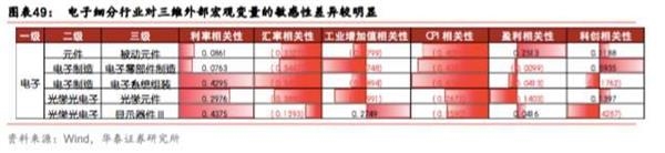 电子成长子行业中电子系统组装、显示器件利率敏感度相对较低;相比其他子行业,被动元件盈利敏感度偏高;电子零部件制造与科创周期敏感度更高。