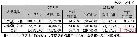 申报稿显示,大理药业2012年至2016年产能利用率分别为70.63%、57.79%、48.40%、33.88%、32.28%,产能利用率连续下滑。