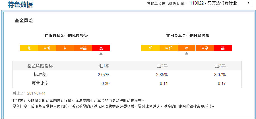 最简单的是大家可以在天天基金网站,点开某只基金的具体页面,下面就会有夏普比率的具体信息(如图)。或者大家也可以登录东方财富choice软件也可以查询到。