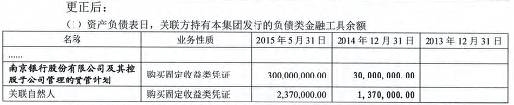 发生在2014年12月31日的同一笔交易,更正前的对象是富安达基金管理有限公司及其子公司,更正后就变成了南京银行股份有限公司及其控股子公司……