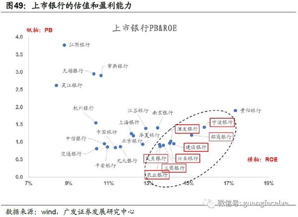 重点关注低估值的四大行和股份制银行。从盈利能力和估值的匹配度来看,盈利能力较高且估值较低的银行主要有:四大行中的工商银行、农业银行、建设银行,以及股份制银行中的招商银行、浦发银行等
