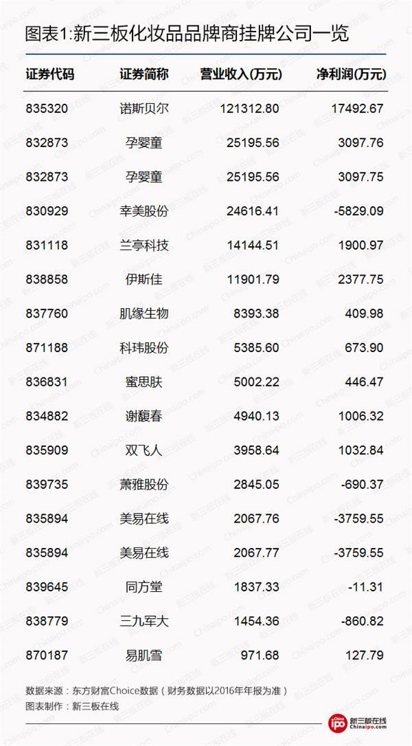 根据新三板在线的统计,目前挂牌的化妆品品牌商有15家:
