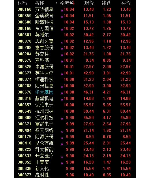 板块方面,以创业板个股为主的软件服务、互联网、电脑设备、传媒娱乐等板块涨幅居前。