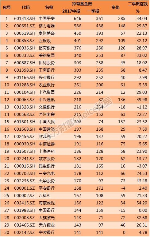 根据基金公布的二季报数据可以发现,基金对蓝筹白马股的抱团取暖现象极为严重。