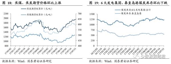 焦炭、焦煤期货价格环比上涨,6大发电集团,秦皇岛港煤炭库存环比下跌。(1)7月31日,动力煤期货价格为600.40元/吨(上周601.80元/吨),环比下跌0.23%。焦炭期货价格为2015.00元/吨(上周1906.00元/吨),环比上涨5.72%;焦煤期货价格1304.00元/吨(上周1,237.50元/吨),环比上涨5.37%。(2)煤炭库存方面,7月31日,6大发电集团煤炭库存1215.29万吨,环比下跌2.06%;秦皇岛港煤炭库存541.50万吨,环比下跌8.38%。