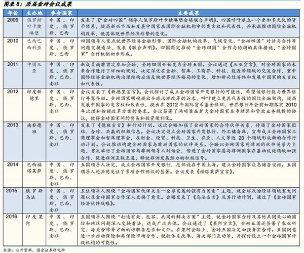 完善国际金融货币体系,提升新兴市场国家和发展中国家的话语权。2010年国际货币基金组织改革方案得以实施,是全球经济治理改革的重要一步,改革过后,中国在IMF中的份额和投票权将提高到第三位,巴西、俄罗斯、印度都将上升到前10位,但新兴经济体的地位还没有得到完全体现,美国份额仍然遥遥领先,具有一票否决权。随着新兴市场国家和发展中国家对全球经济的拉动作用越来越明显,在重要国际机构中寻求更多的话语权是必然选择,金砖国家应当继续推动完善国际金融货币体系,推动世界银行投票权的审议工作,于自身内部应发挥好金砖国家新开发银行的作用,减少对美元和欧元的依赖,支持金砖国家及其他新兴市场国家和发展中国家的发展而努力。