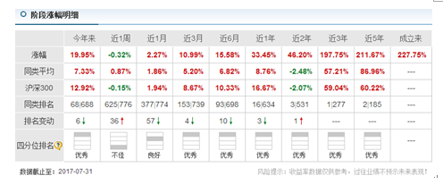 数据来源:天天基金网,天天基金研究中心;截止日期:2017-07-31