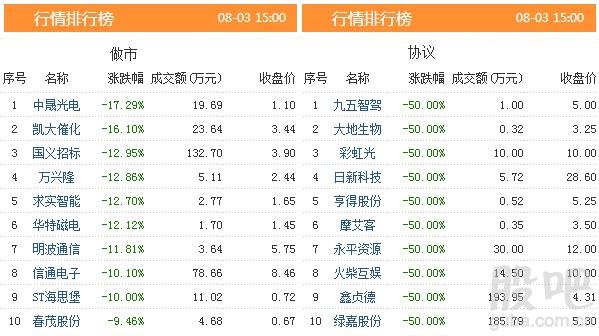 【跌幅榜单】