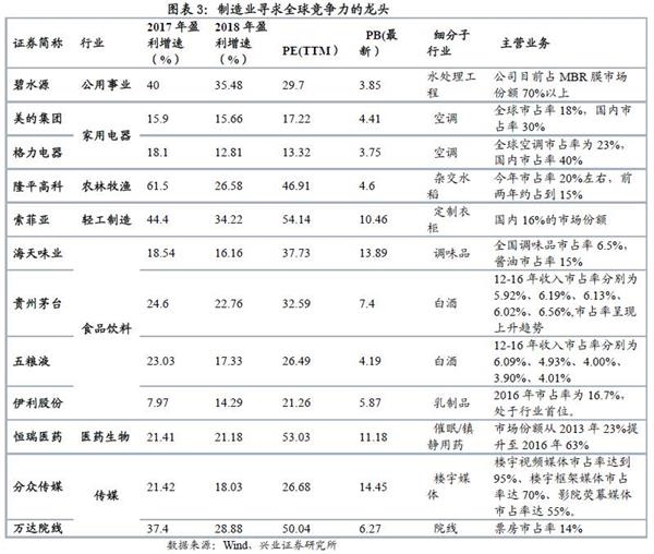 l 制造业寻找拥有全球竞争力的龙头,具备从规模优势到创新升级的优势。